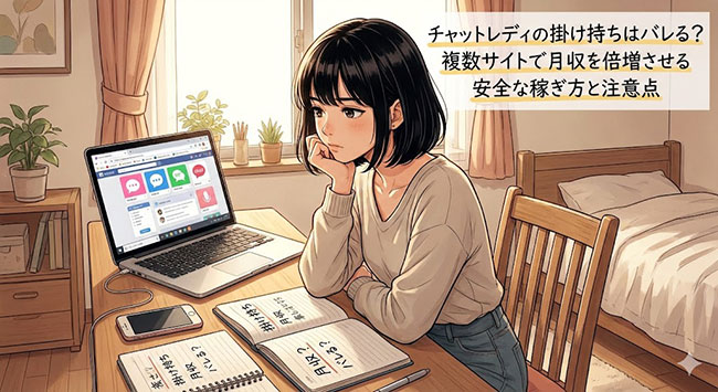 チャットレディの掛け持ちはバレるのか?紹介しながら、複数サイトで安全に月収を増やす方法を解説しています。 -
