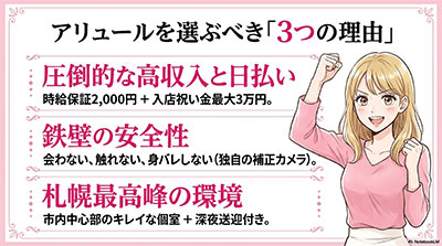 実は「アリュール札幌駅前店」は、国内最大級の安全性と日払い保証があります。