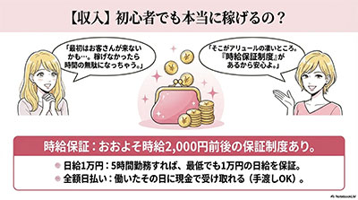 初心者でも安心の「時給保証」と「全額日払い」制度