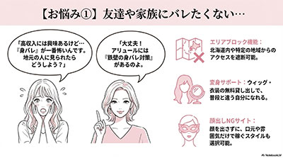 「難しそう…」と不安な方は、まずはスタッフに「親バレ・会社バレ対策」について気軽に聞いてみてください。