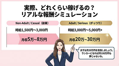 - フルタイムでがっつり:月収約30万円〜50万円以上