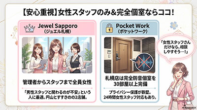 • ポケットワーク札幌:清潔な個室を完備してスタッフの教育レベルが段違い