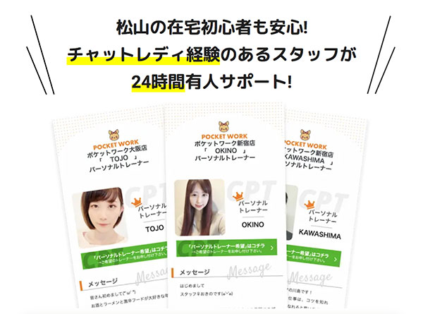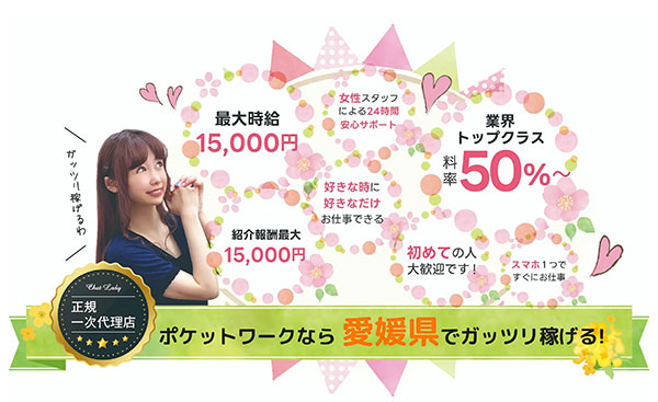 「チャトレ 松山」でお店選びに迷ったら、サポート体制が手厚いポケットワークがオススメです。