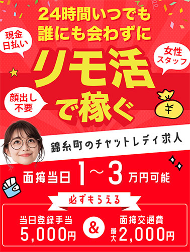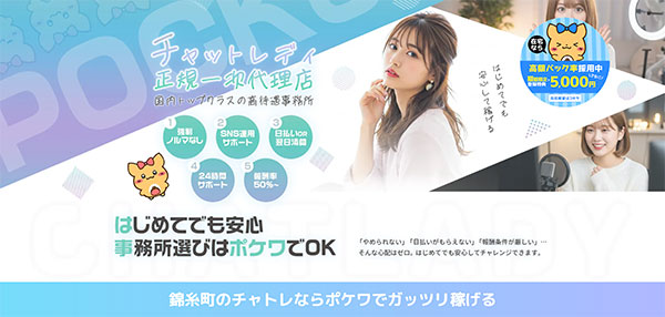 錦糸町でチャトレ(チャットレディ)で、ノンアダルトで安全に稼ぎたい方は、ポケットワークを強くオススメします。