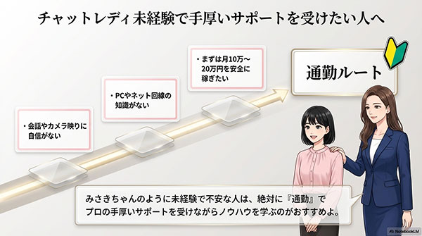 とくにチャットレディ初心者にとっては、スタッフから直接アドバイスを受けられる環境は何よりも心強い「投資」です。