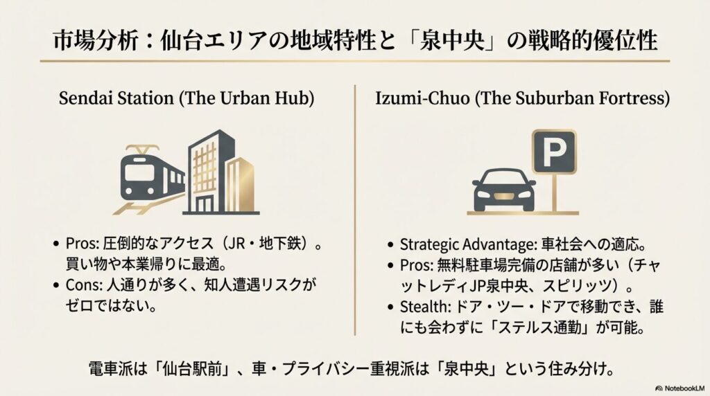 【結論】仙台駅前より泉中央!誰にもバレずに稼ぐ「賢い選択」