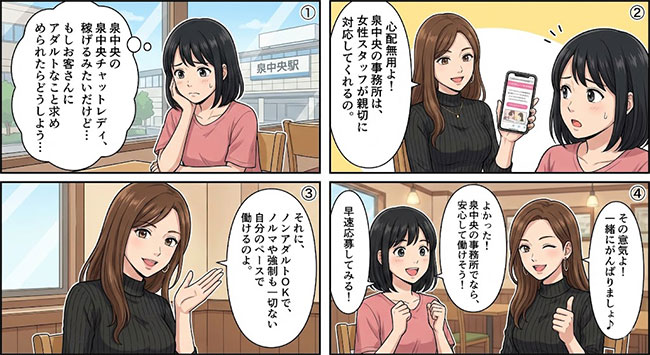 その悩みに対する最適解こそが「泉中央エリアでのチャットレディ」です。